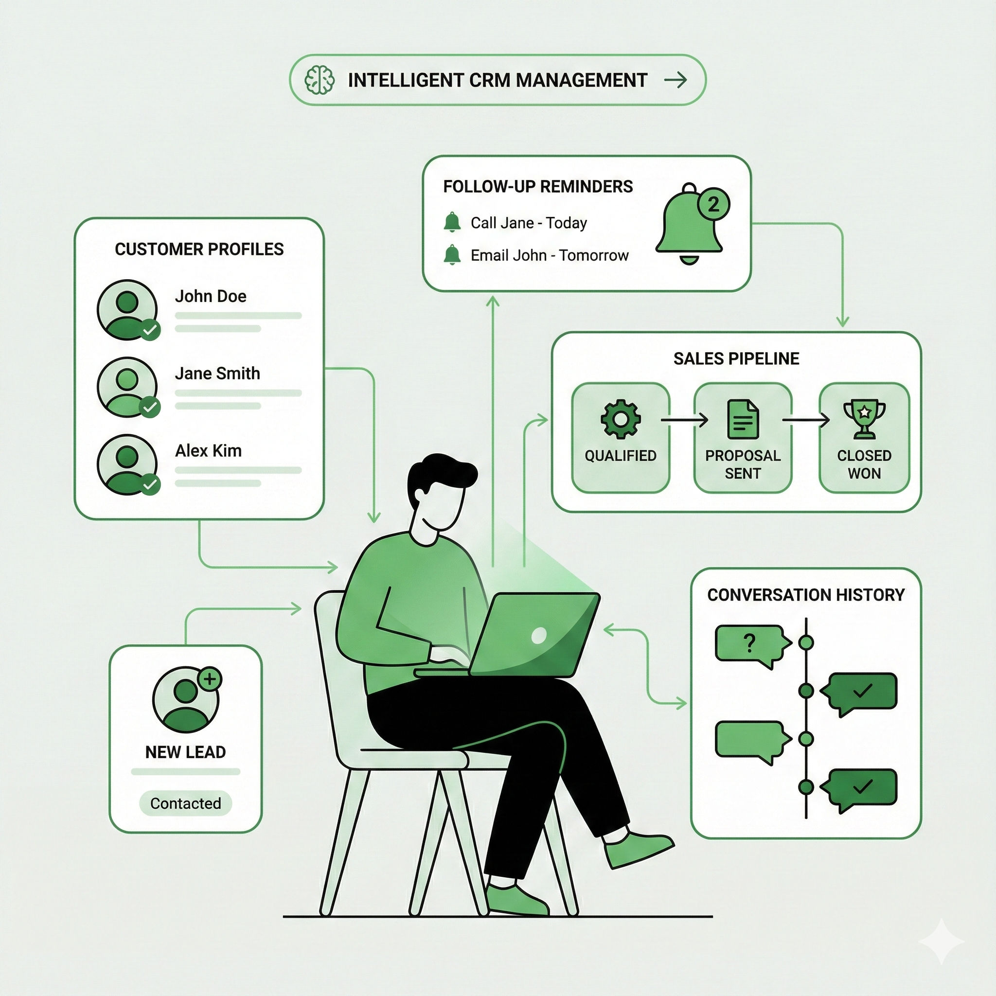 Keep all your customer data, leads, and follow-up activities organized in one place. Our CRM system helps you track conversations, manage sales, and never miss an important update. With easy automation and simple workflows, your team can respond faster, close more deals, and build stronger customer relationships.