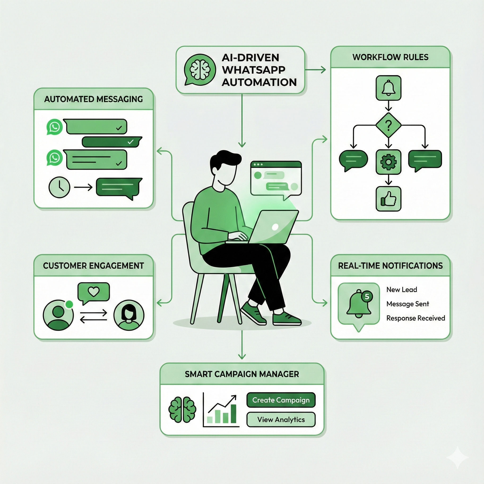 Create smart workflows tailored to your business requirements. From welcome messages to follow-ups, reminders, drip campaigns, and lead nurturing—automate every step so your system keeps working for you 24/7.